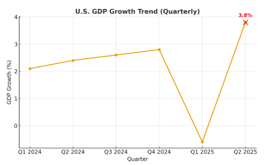 Patriots, the scoreboard just lit up. The U.S. economy posted 3.8% GDP growth in Q2, the strongest number we’ve seen in recent quarters. This is not spin, not wishful thinking—it’s real proof that America is moving forward, faster and stronger than the critics expected. For Republican investors, the message is clear: we are in a winning cycle, and positioning matters.
